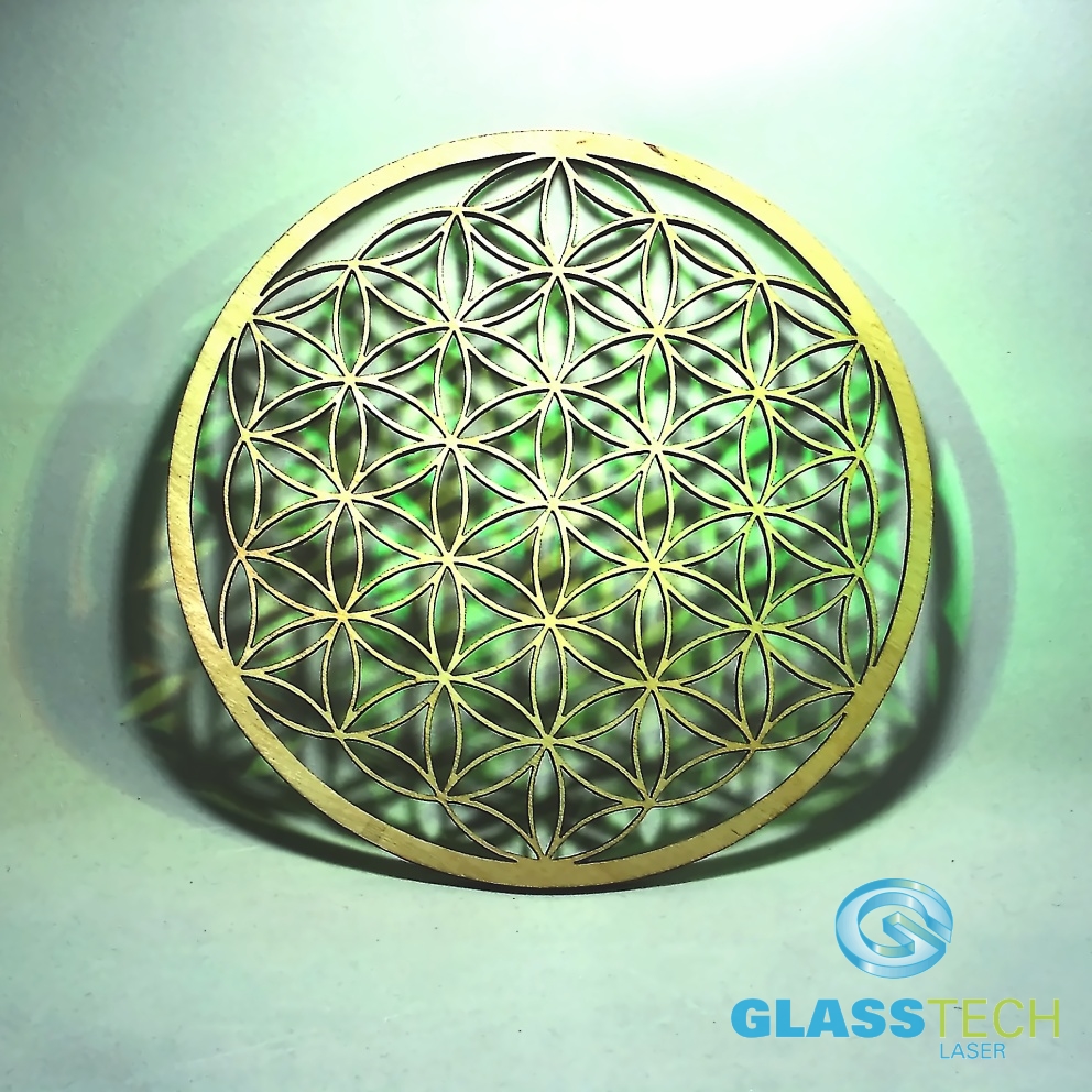 Harmonizační podložka pod karafu o průměru 140 mm s vylaserovaným symbolem květu života.