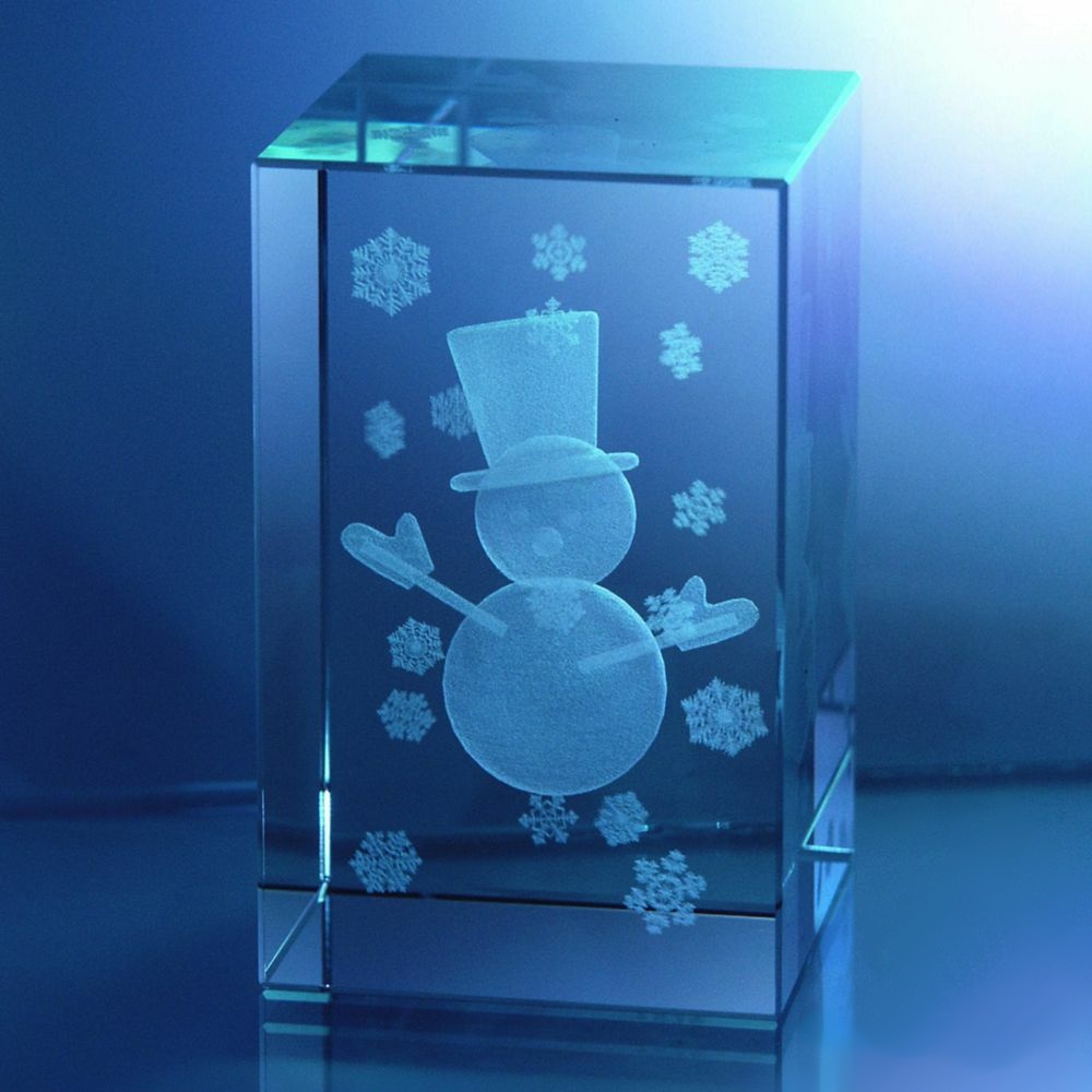 - Vánoční 3D sněhulák v kvádru 30x30x50 mm